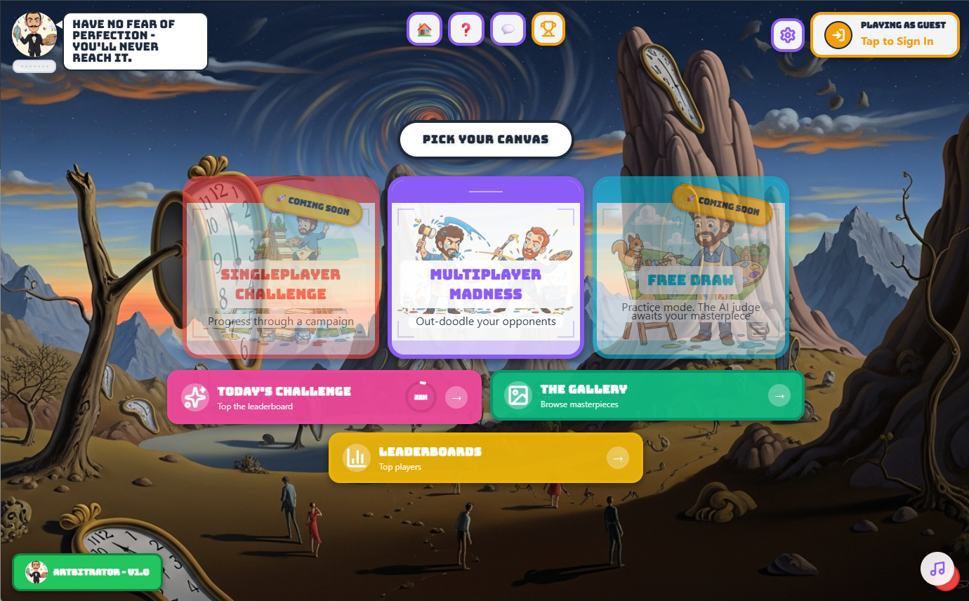 Ever wondered what Bob Ross would think of your drawing? Or how brutally honest Picasso would be? Now you can find out! Artbitrator is a fast-paced multiplayer drawing game where you create art for AI judges based on legendary artists.